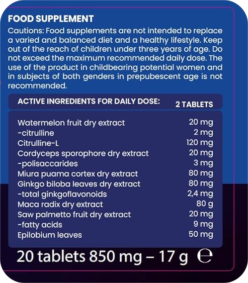 A készítmény csak felnőttek számára ajánlott, 18 éves kortól. Amennyiben fennálló egészségügyi problémái vannak, vagy gyógyszert szed, érdemes egészségügyi szakemberrel konzultálnia a használat megkezdése előtt.
